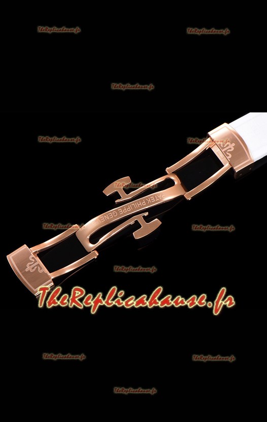 Bracelet en caoutchouc incurvé de style nouveau avec boucle déployante en acier, complet avec les marquages Patek Philippe.