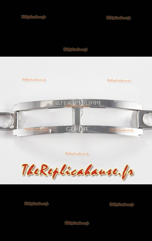 Bracelet en acier inoxydable 904L relié par des vis à un fermoir pliant Patek Philippe.