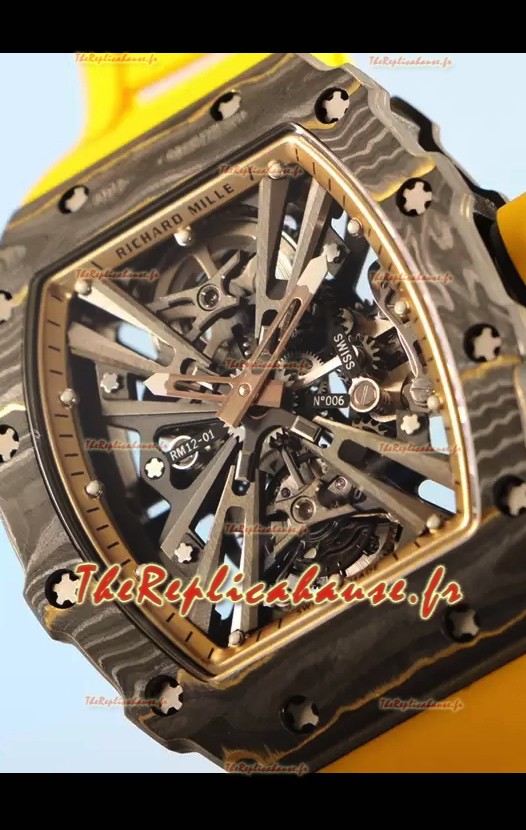 Richard Mille RM12-01 Montre réplique du mouvement tourbillon Miroir 1:1 en fibre de carbone