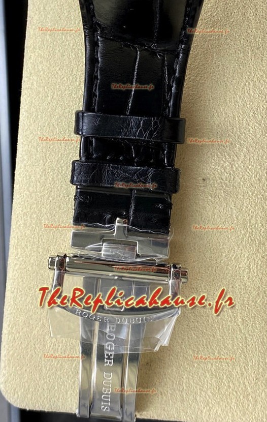 Bracelet en cuir véritable avec boucle déployante en acier inoxydable, avec marquages et gravures Roger Dubuis.