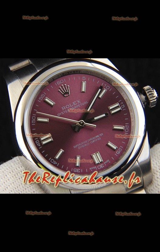 Réplique de montre Rolex Oyster Perpetual à mouvement japonais 36 mm - Cadran bordeaux