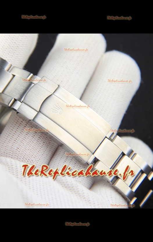 Bracelet en acier inoxydable 904L avec fermoirs Rolex et marquages/gravures Rolex.