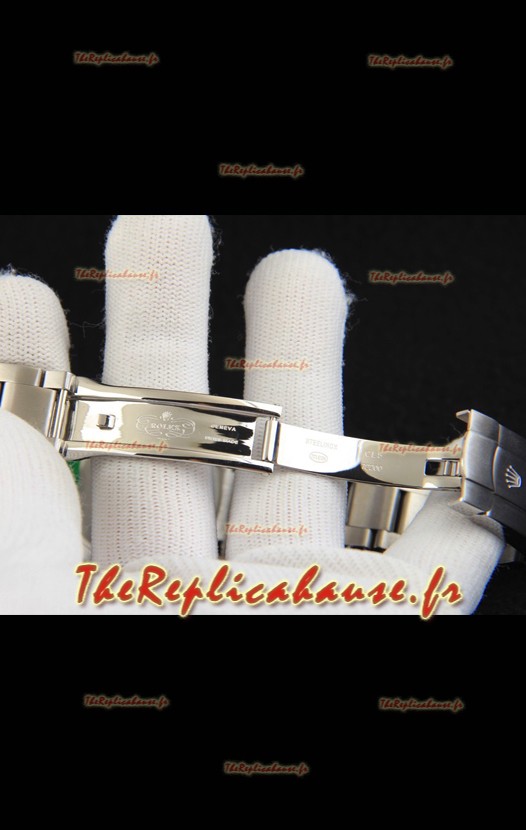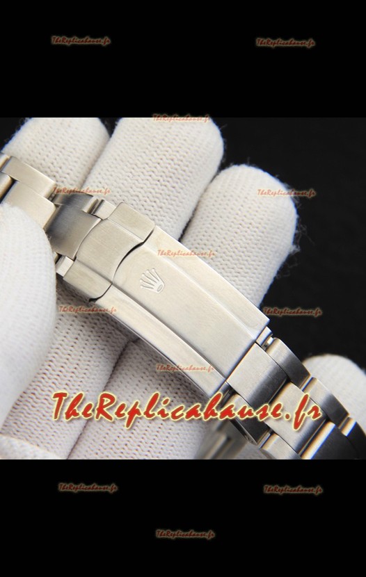 Bracelet en acier inoxydable 904L avec fermoirs Rolex et marquages/gravures Rolex.
