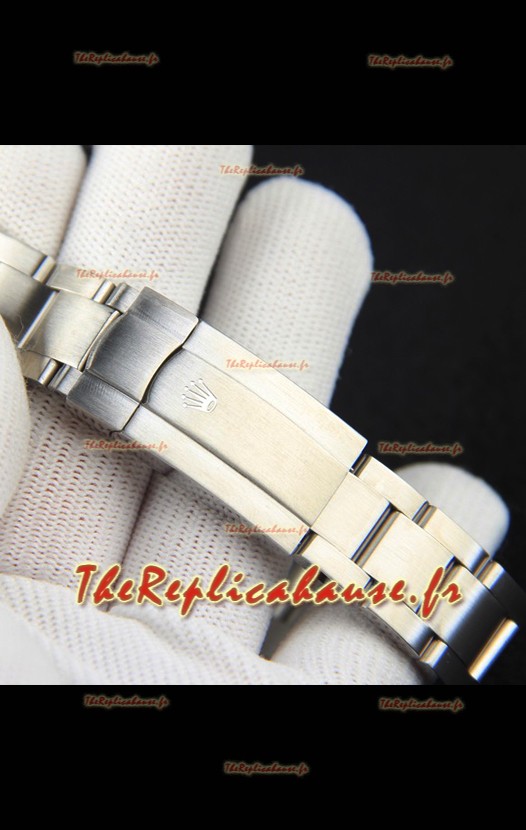 Bracelet en acier inoxydable 904L avec fermoirs Rolex et marquages/gravures Rolex.