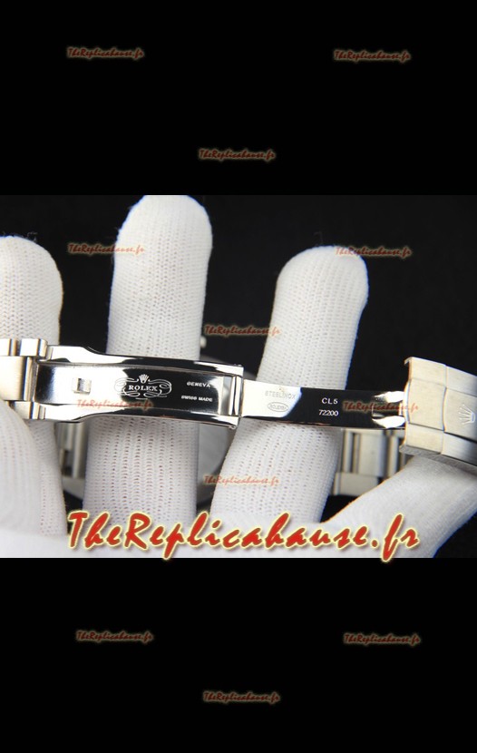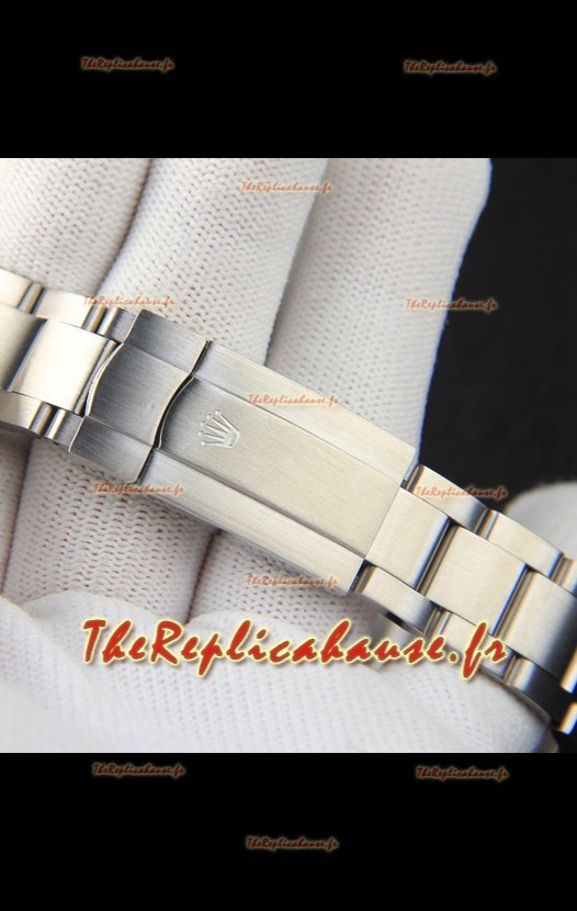 Bracelet en acier inoxydable 904L avec fermoirs Rolex et marquages/gravures Rolex.