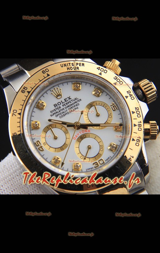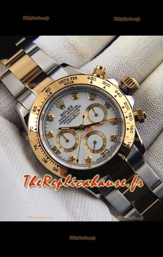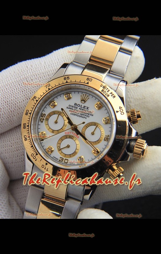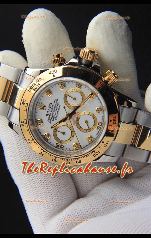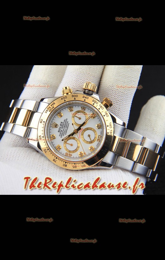 Montre Rolex Daytona à mouvement japonais, boîtier bicolore or et cadran blanc