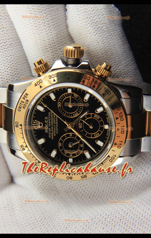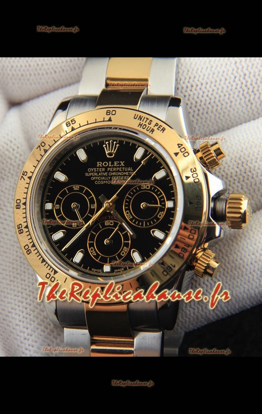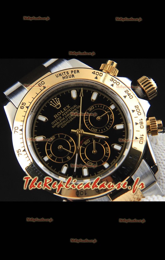 Montre Rolex Daytona à mouvement japonais, boîtier bicolore or et cadran noir