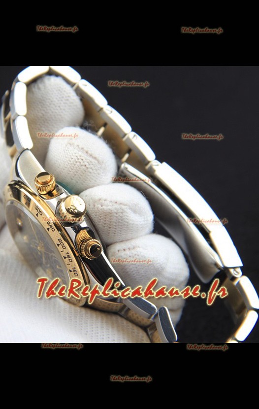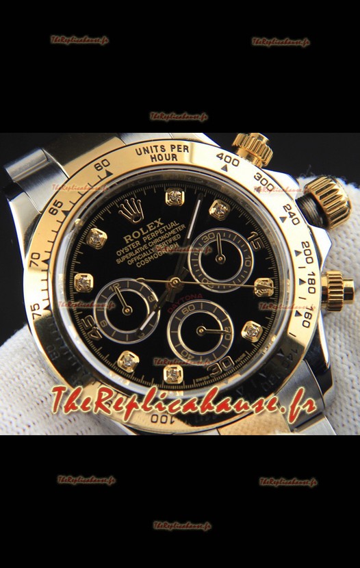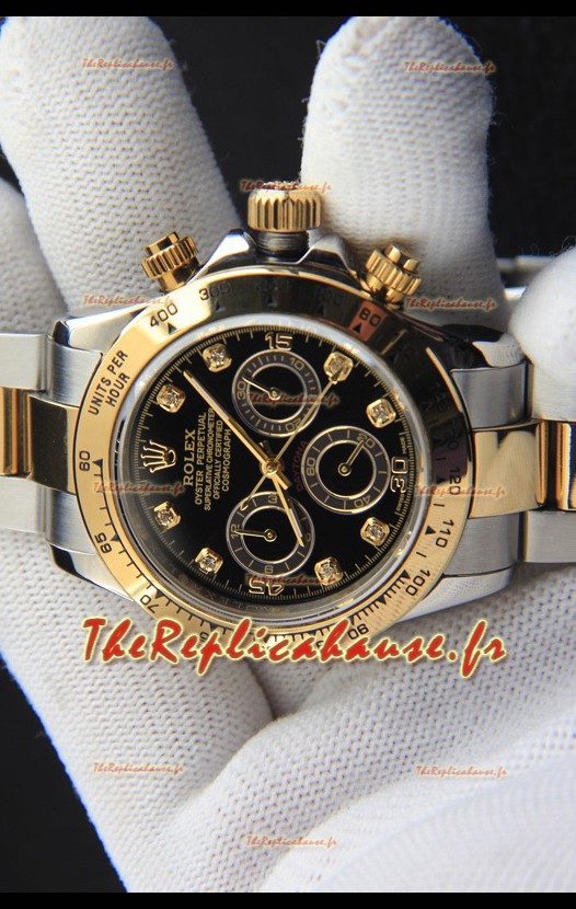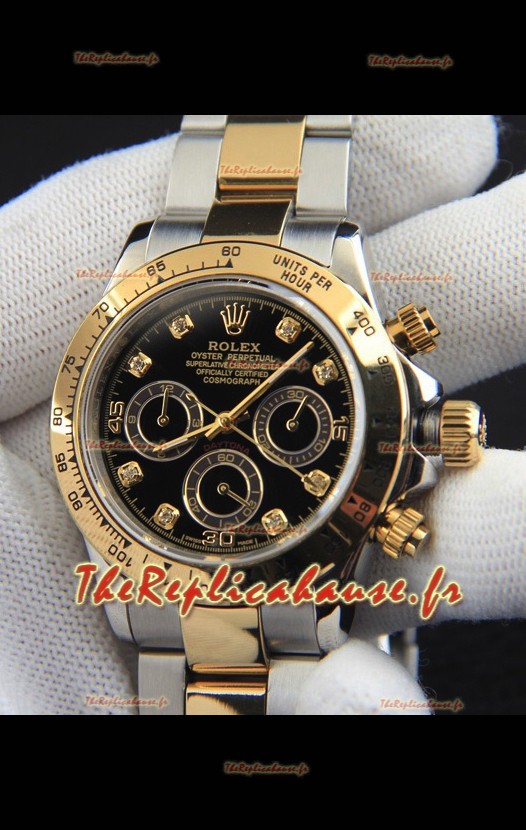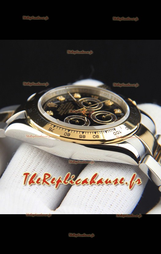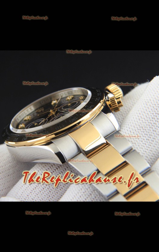 Montre Rolex Daytona à mouvement japonais, boîtier bicolore or et cadran noir