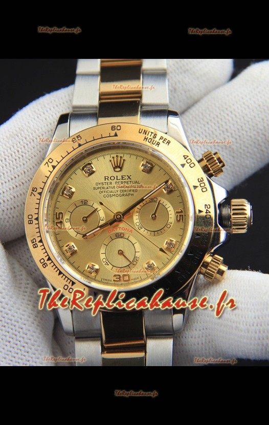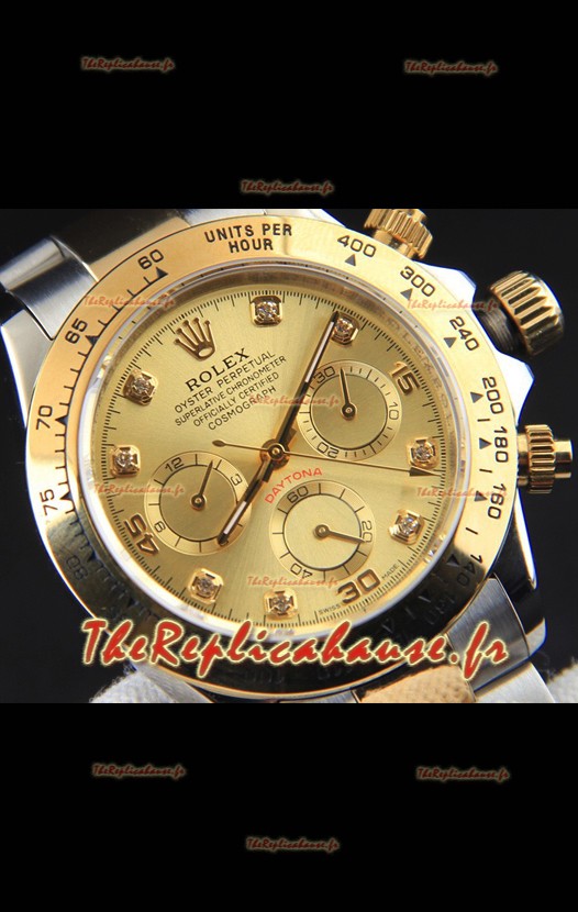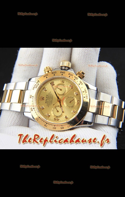Montre Rolex Daytona à mouvement japonais, boîtier bicolore or et cadran or.