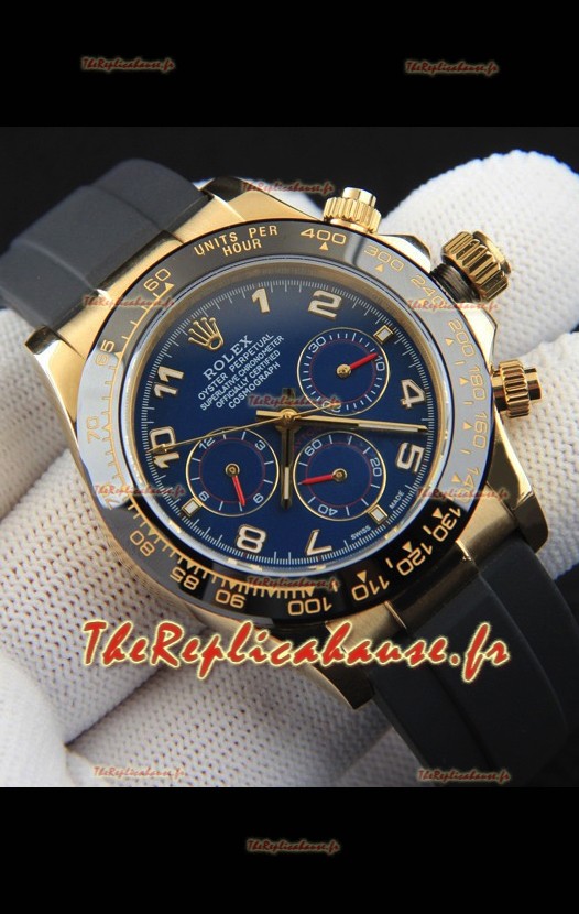 Réplique de montre Rolex Daytona à mouvement japonais, boîtier en or et cadran bleu