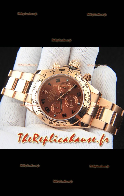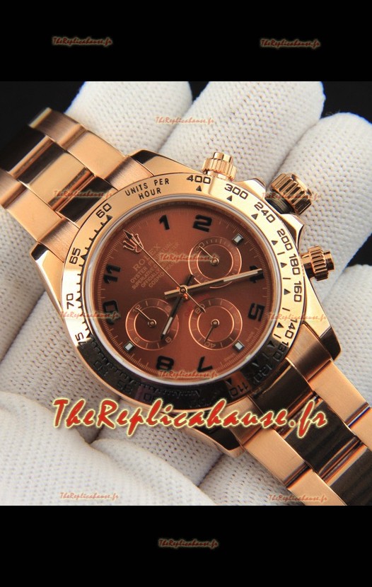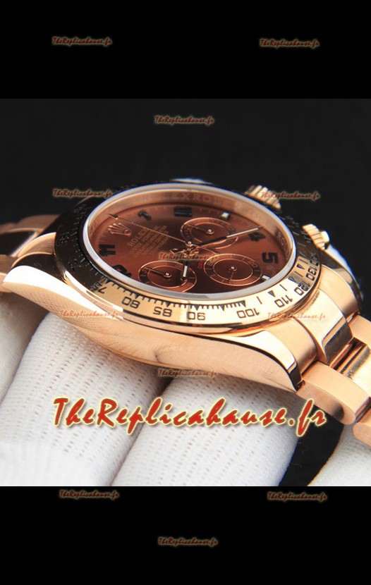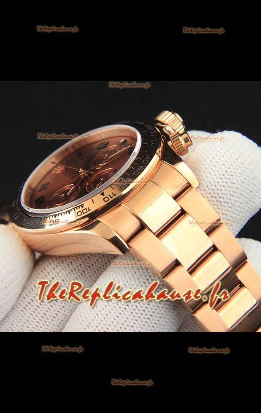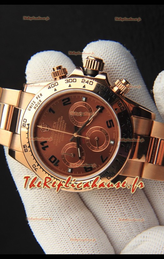 Réplique de montre Rolex Daytona à mouvement japonais, boîtier en or et cadran marron