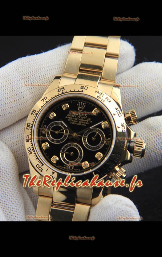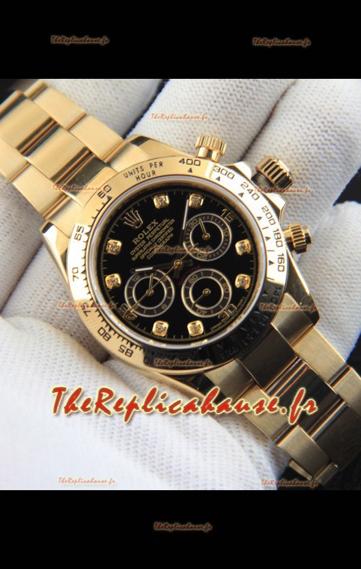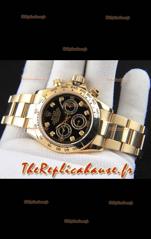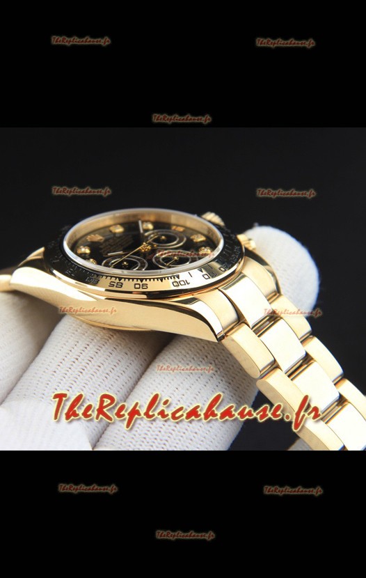 Réplique de montre Rolex Daytona à mouvement japonais, boîtier en or et cadran noir