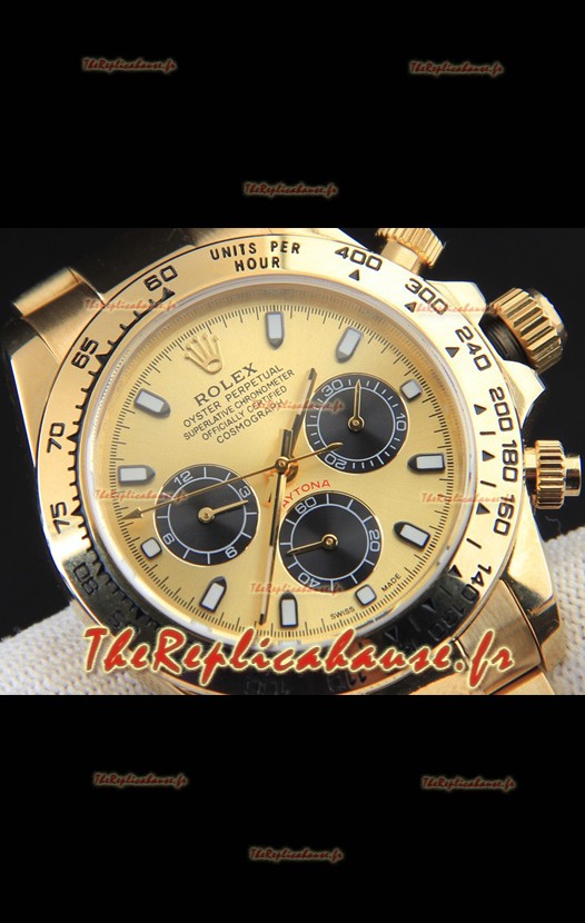 Réplique de montre Rolex Daytona à mouvement japonais, boîtier et cadran en or