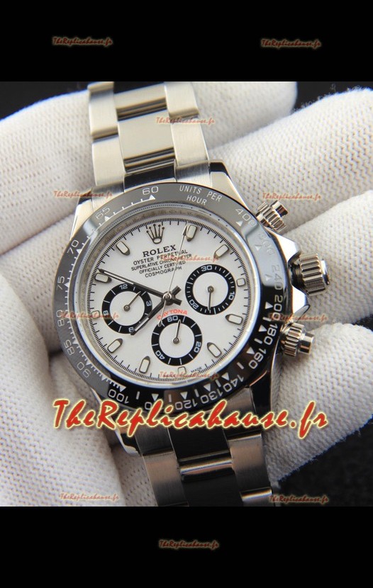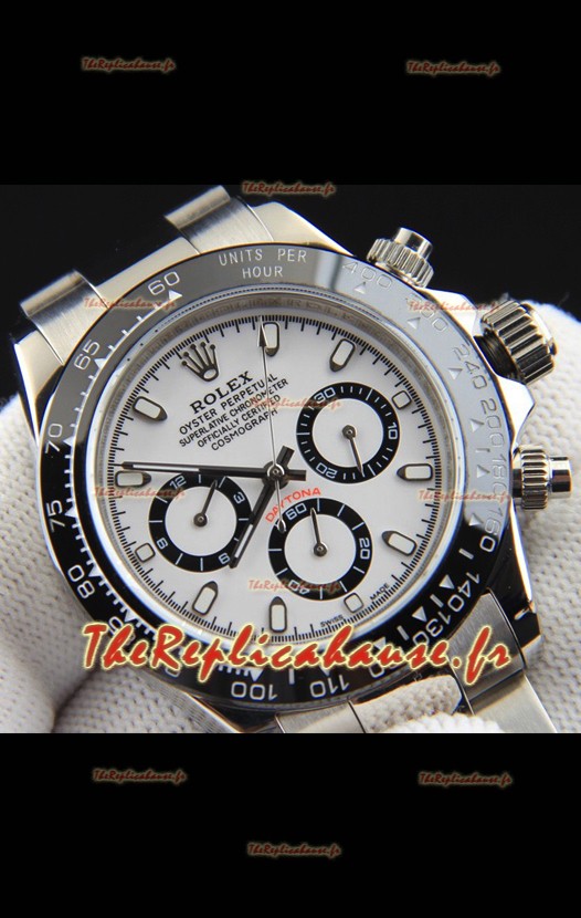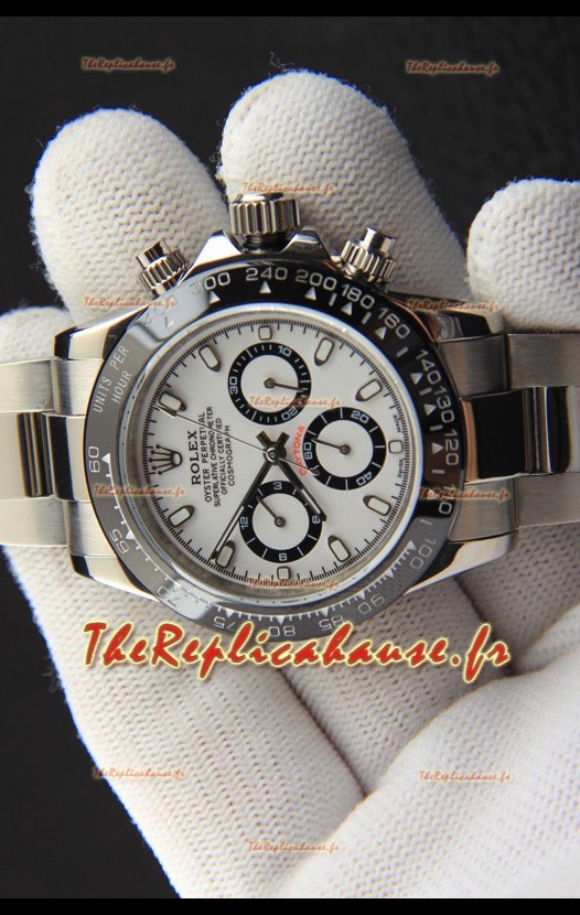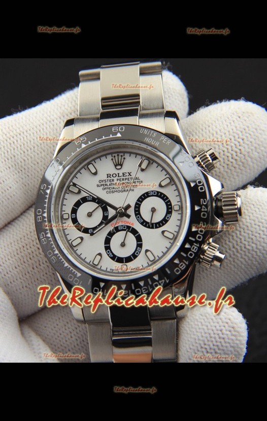 Réplique de montre Rolex Daytona à mouvement japonais, cadran blanc et lunette en céramique