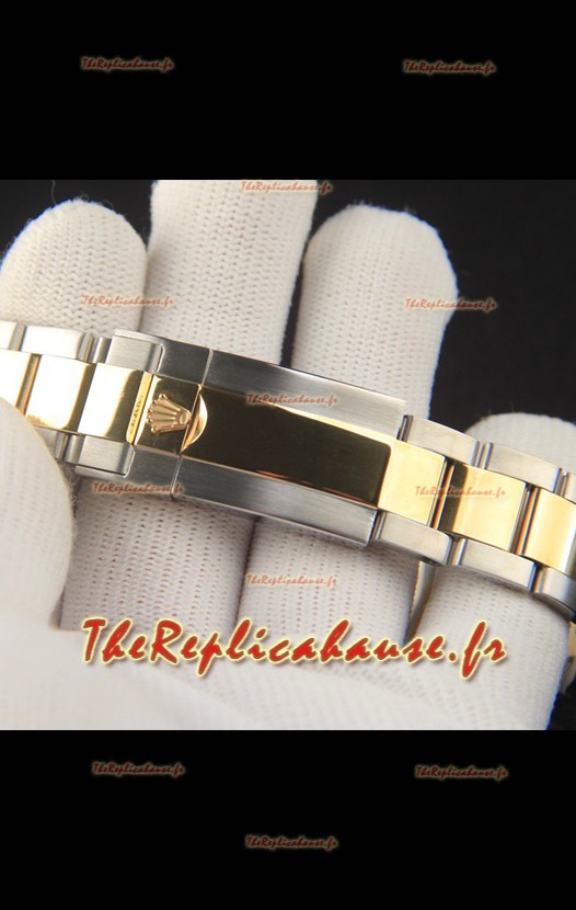 Bracelet en acier inoxydable 904L plaqué or 18 carats avec boucle déployante et marquages ​​Rolex