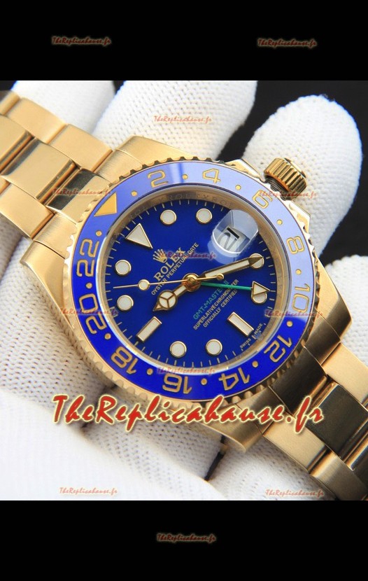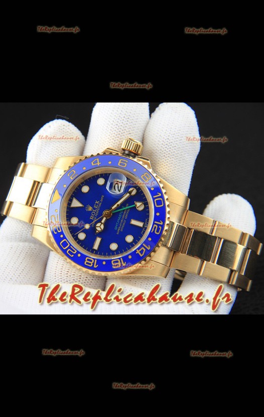 Montre Rolex GMT Master II plaquée or rose, réplique japonaise, cadran bleu