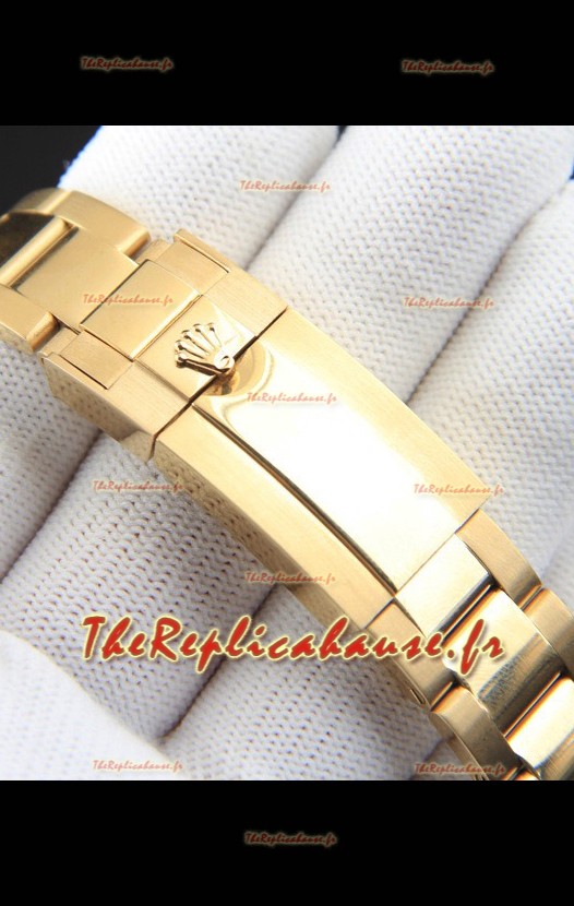 Bracelet en acier inoxydable 904L plaqué or rose 18 carats avec boucle déployante et marquages ​​Rolex
