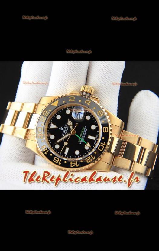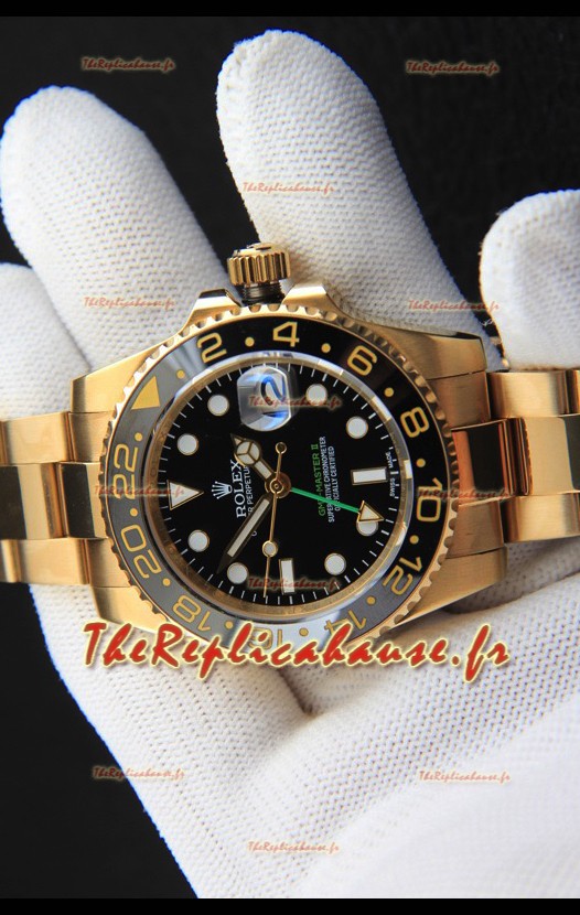Montre Rolex GMT Master II plaquée or rose, réplique japonaise, cadran noir