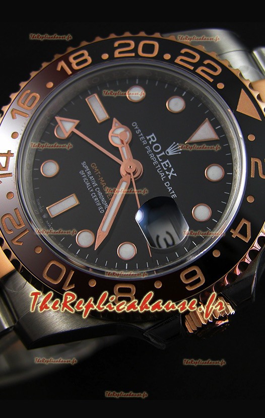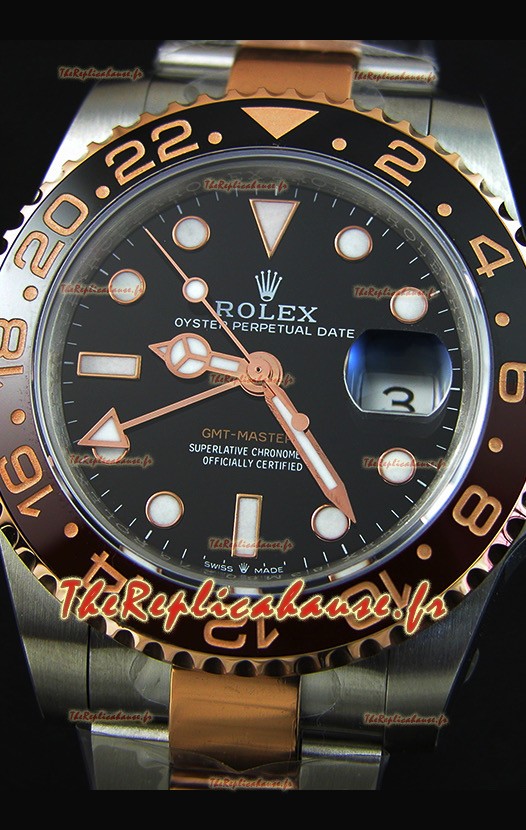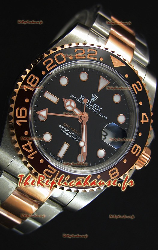 Réplique de montre japonaise Rolex GMT avec boîtier en or rose bicolore