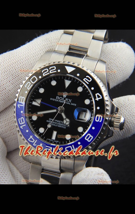 Réplique de montre Rolex GMT Master II à mouvement japonais, boîtier en acier et cadran noir