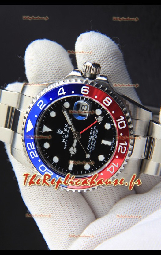 You're reviewing: Réplique de montre Rolex GMT Master II à mouvement japonais, boîtier en acier et cadran noir