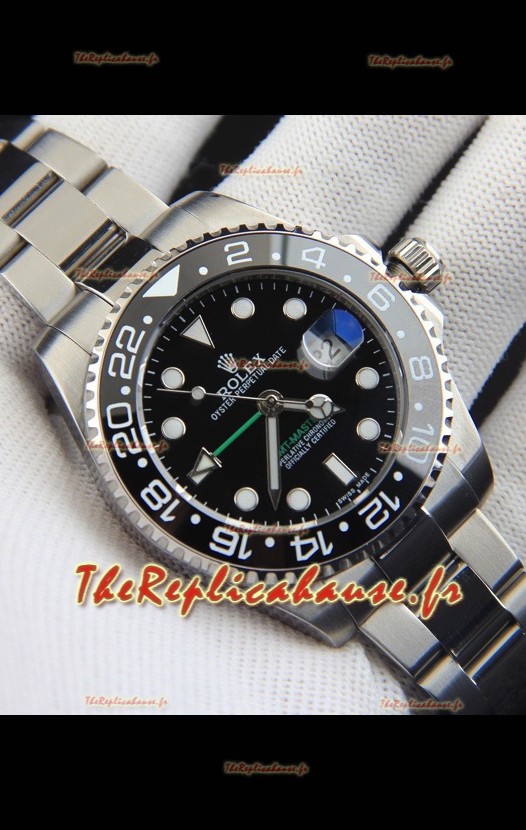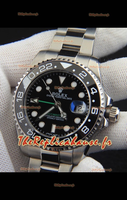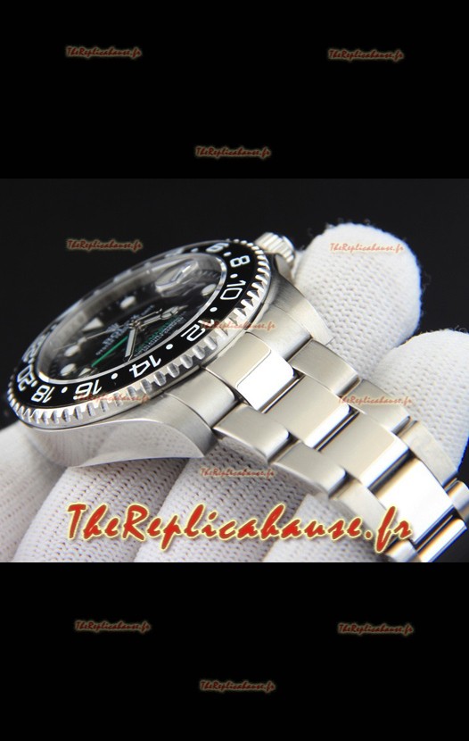 Réplique de montre Rolex GMT Master II à mouvement japonais, boîtier en acier et cadran noir