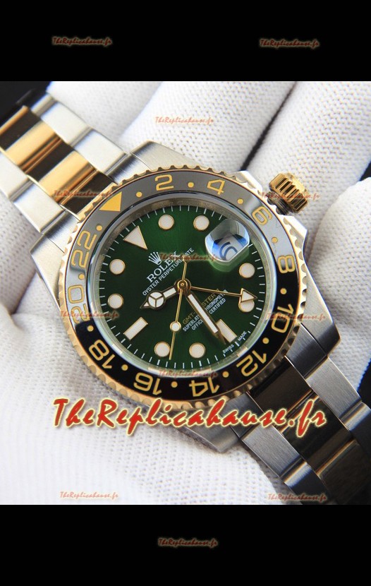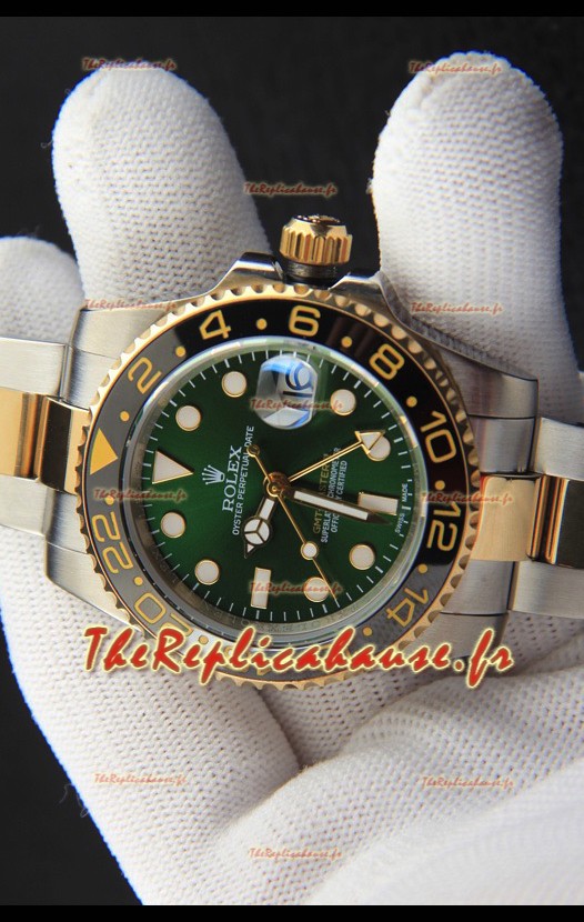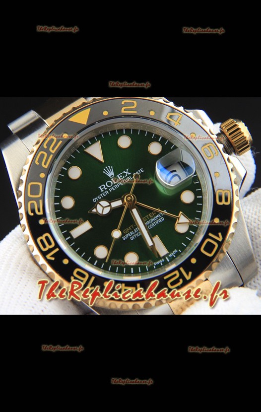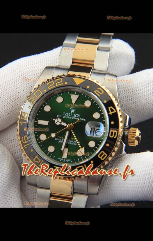 Rolex GMT Master II, réplique japonaise bicolore plaquée or rose, cadran vert