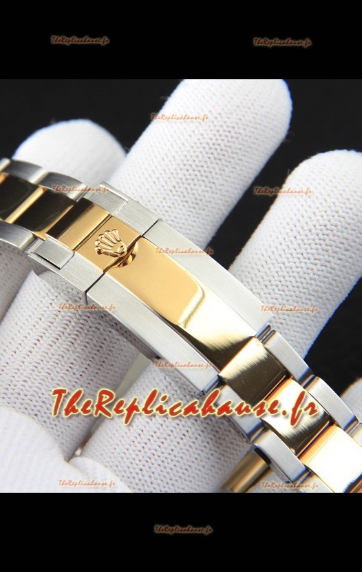 Bracelet en acier inoxydable 904L plaqué or rose 18 carats bicolore, avec boucle déployante et marquages ​​Rolex