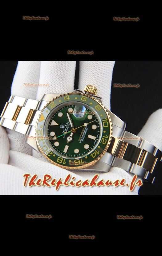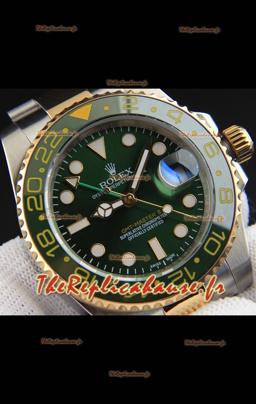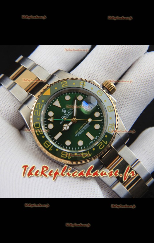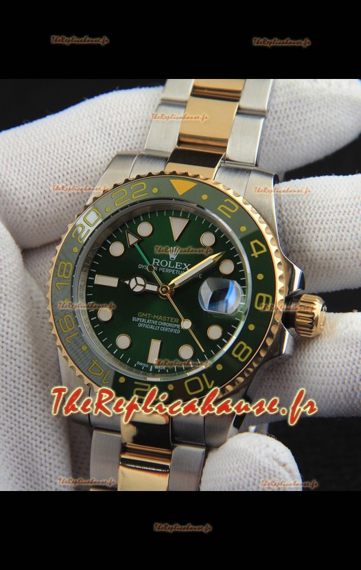 Rolex GMT Master II, réplique japonaise bicolore plaquée or rose, cadran vert