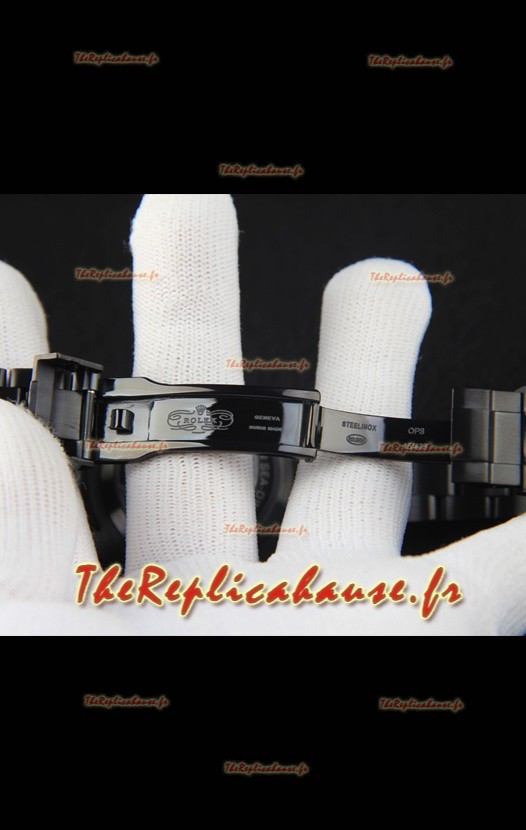 Bracelet en acier inoxydable 904L avec boucle Rolex et gravures Rolex.