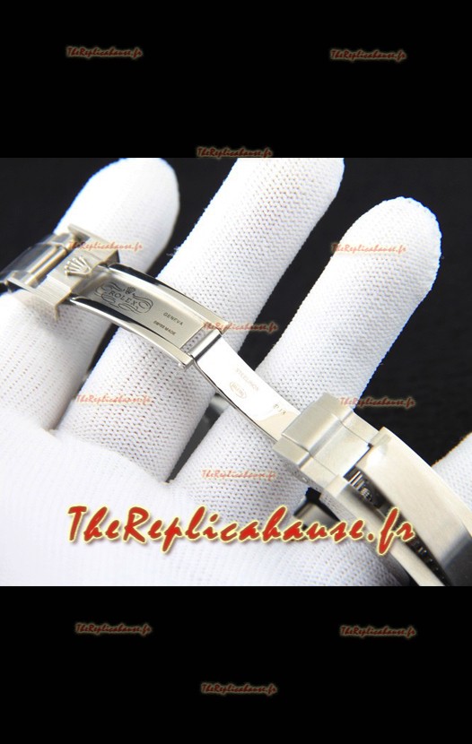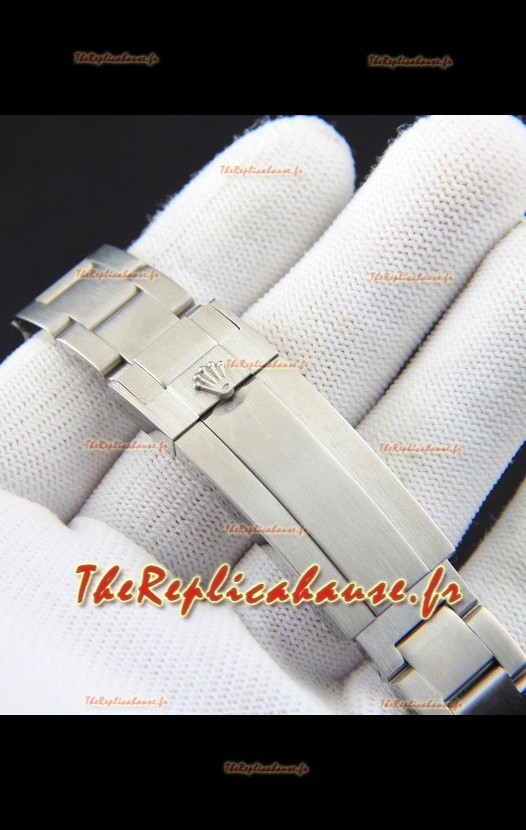 Bracelet en acier inoxydable 904L avec boucle Rolex et gravures Rolex.