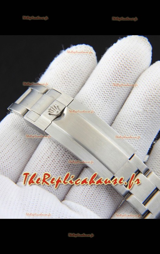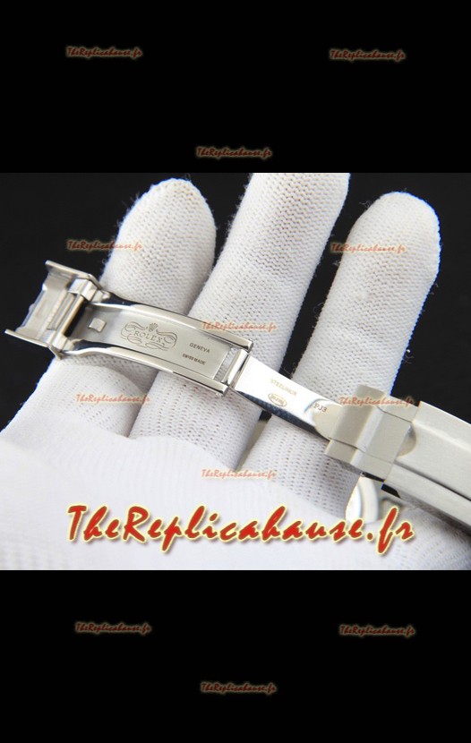 Bracelet en acier inoxydable 904L avec boucle Rolex et gravures Rolex.