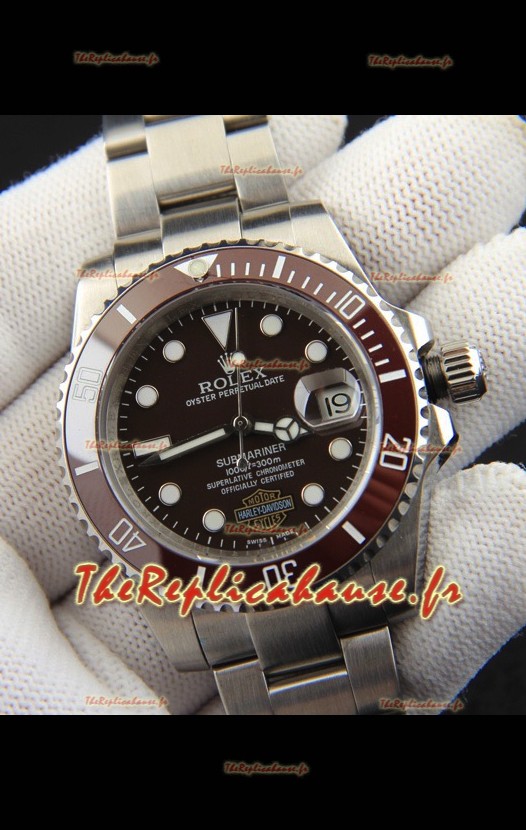 Montre Rolex Submariner Harley-Davidson réplique japonaise en acier 904L, cadran marron