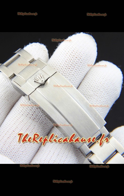 Bracelet en acier inoxydable 904L avec boucle Rolex et gravures Rolex.
