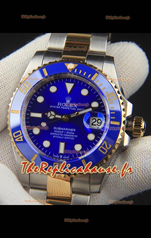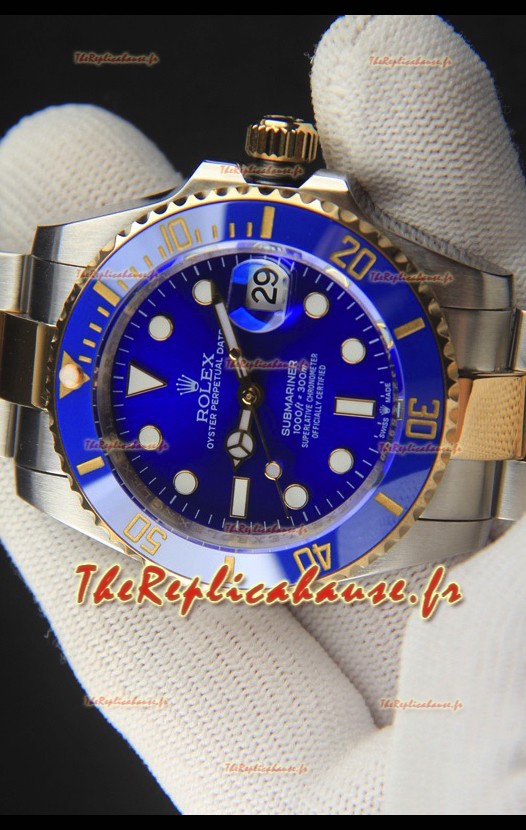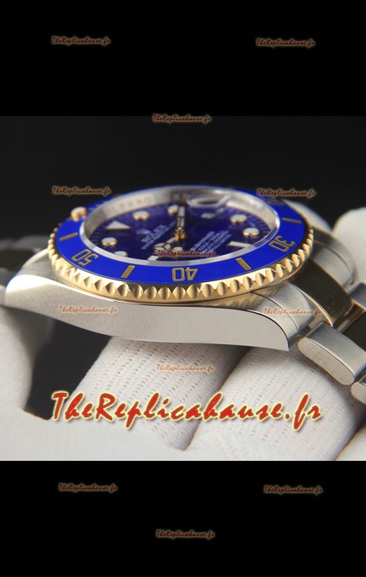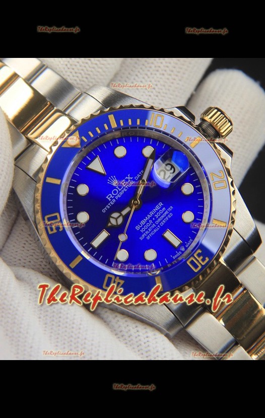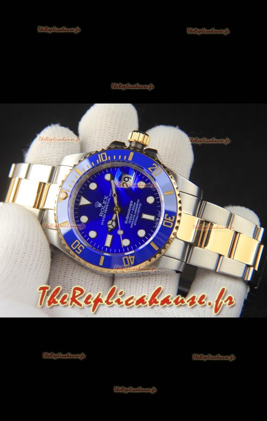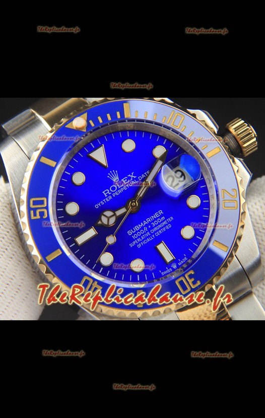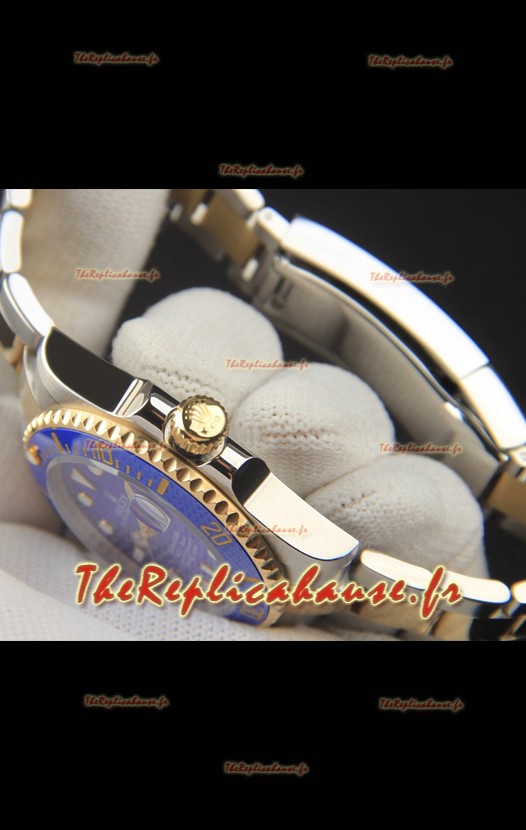 Réplique japonaise de la montre Rolex Submariner 904L bicolore or jaune - Lunette en céramique bleue