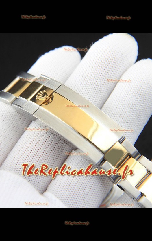 Plaqué or jaune 18 carats bicolore sur bracelet en acier inoxydable 904L avec boucle Rolex et gravures Rolex