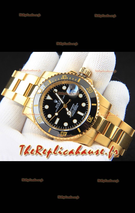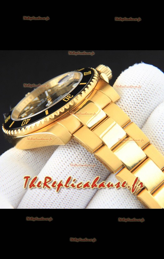 Réplique japonaise de la montre Rolex Submariner, boîtier en or jaune, cadran noir