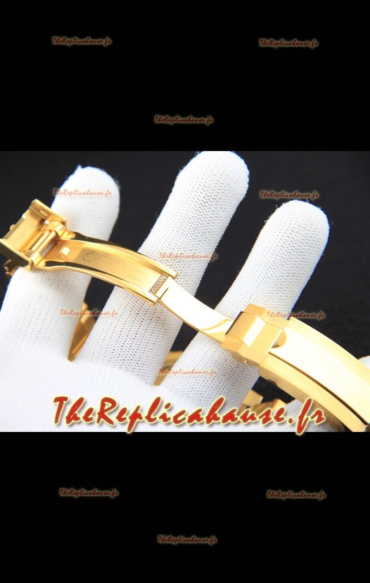 Bracelet en acier inoxydable 904L plaqué or jaune 18 carats avec boucle Rolex et gravures Rolex