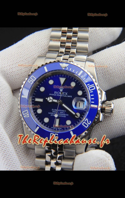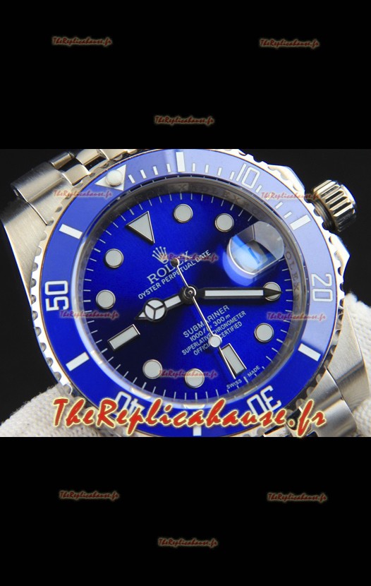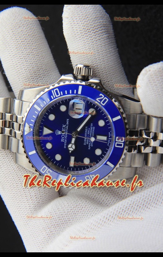 Réplique japonaise de la montre Rolex Submariner en acier 904L avec lunette en céramique bleue