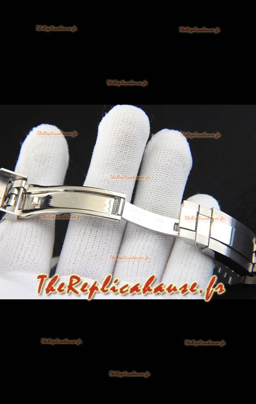 Bracelet en acier inoxydable 904L avec boucle Rolex et gravures Rolex.