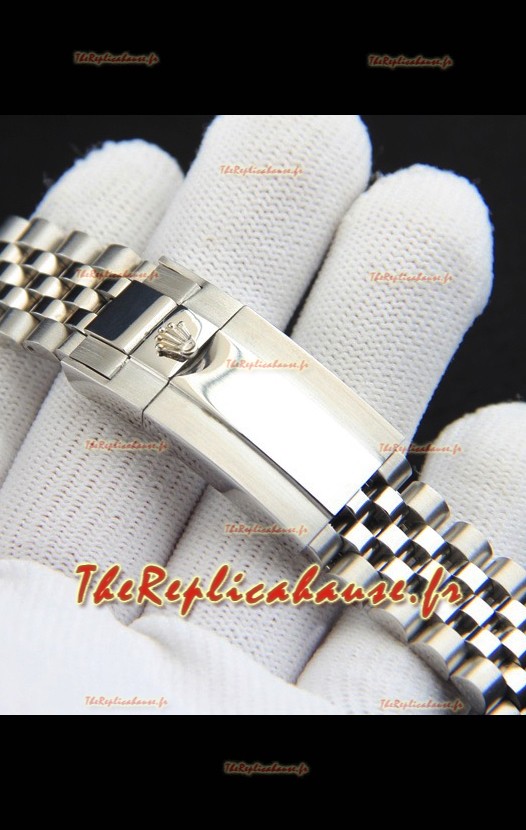 Bracelet en acier inoxydable 904L avec boucle Rolex et gravures Rolex.