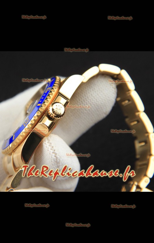 Réplique japonaise de montre Rolex Submariner en or jaune et cadran bleu