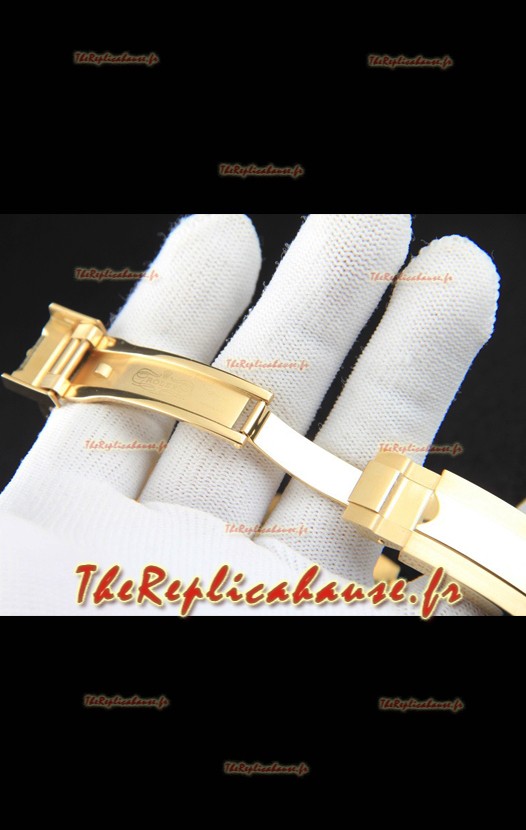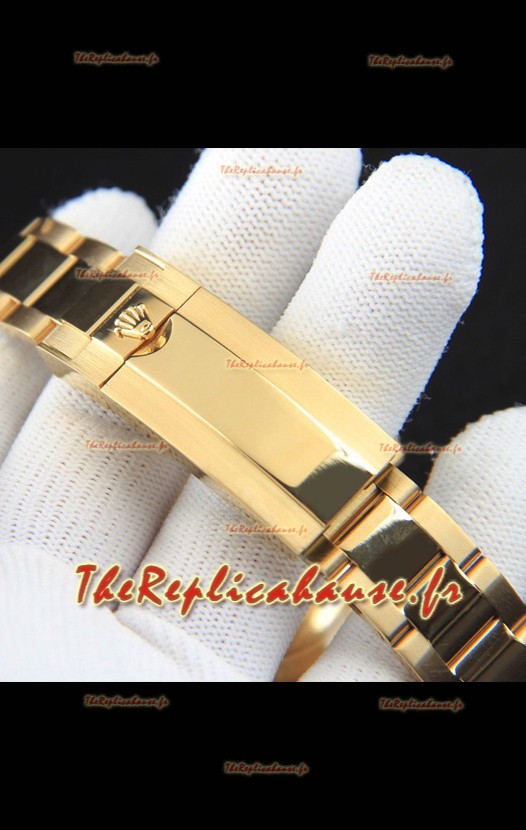 Bracelet en acier inoxydable 904L plaqué or jaune 18 carats avec boucle Rolex et gravures Rolex
