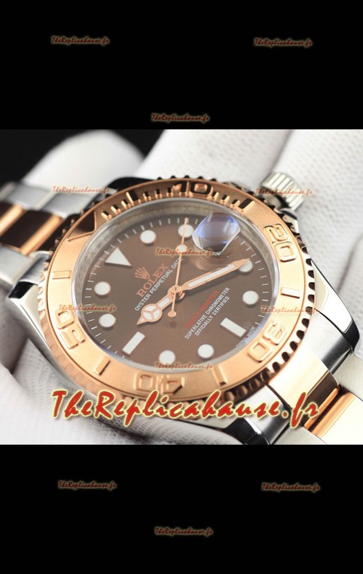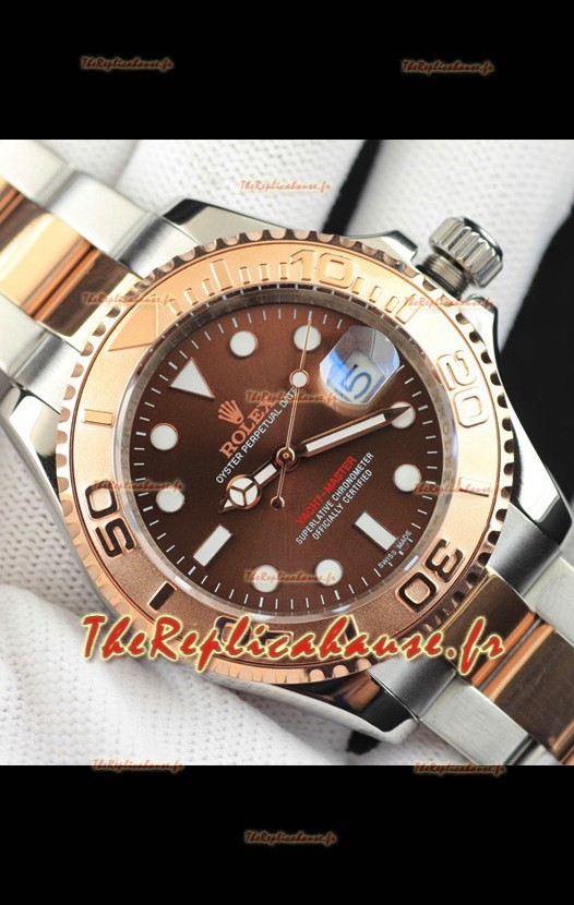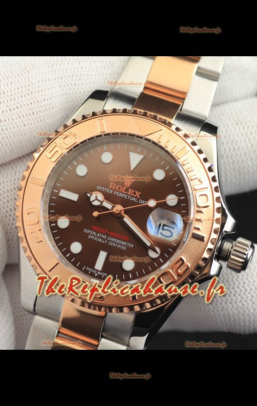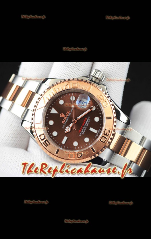 Montre Rolex Yacht-Master à mouvement japonais, boîtier bicolore or, cadran marron clair, 37 mm