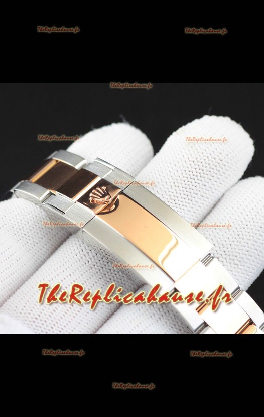 Bracelet en acier inoxydable 904L avec fermoir Rolex et gravures Rolex.