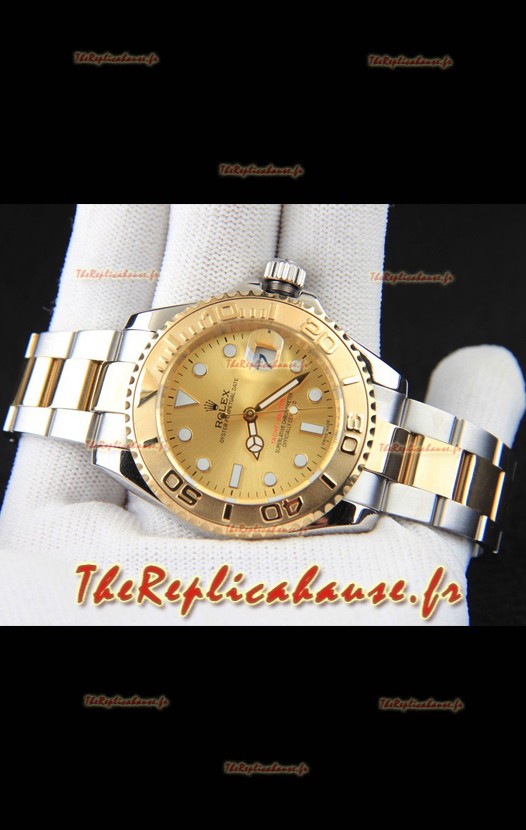 Montre Rolex Yacht-Master à mouvement japonais, boîtier bicolore or - Cadran or, 37 mm