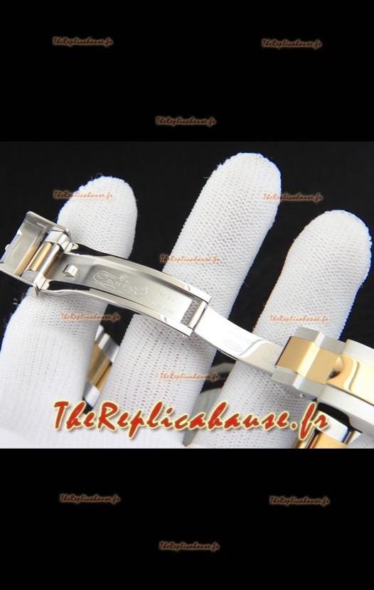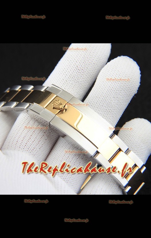 Bracelet en acier inoxydable 904L avec fermoir Rolex et gravures Rolex.