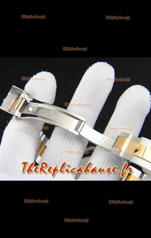 Bracelet en acier inoxydable 904L avec fermoir Rolex et gravures Rolex.