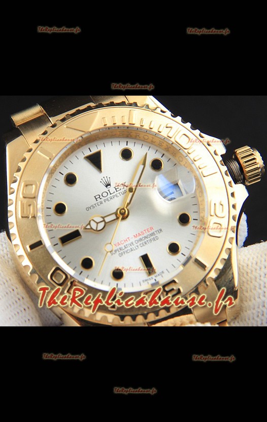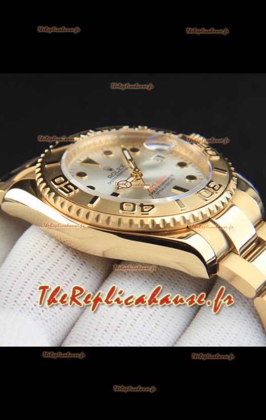 Montre Rolex Yacht-Master à mouvement japonais, boîtier en or, cadran en acier, 37 mm