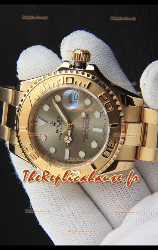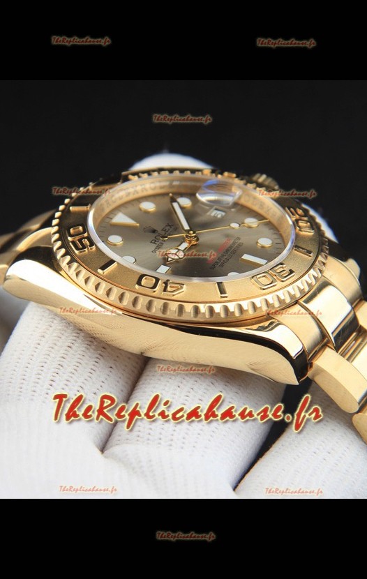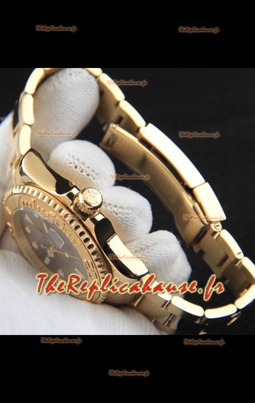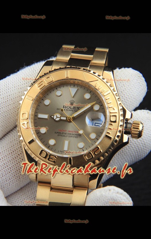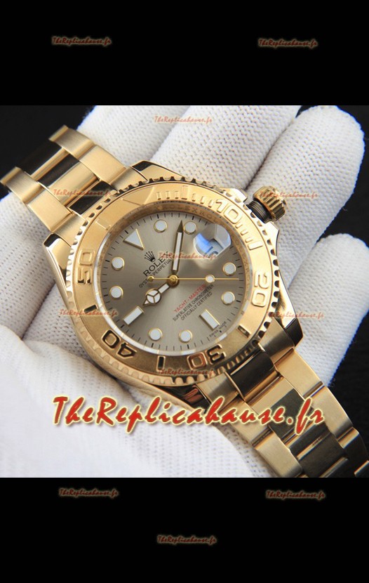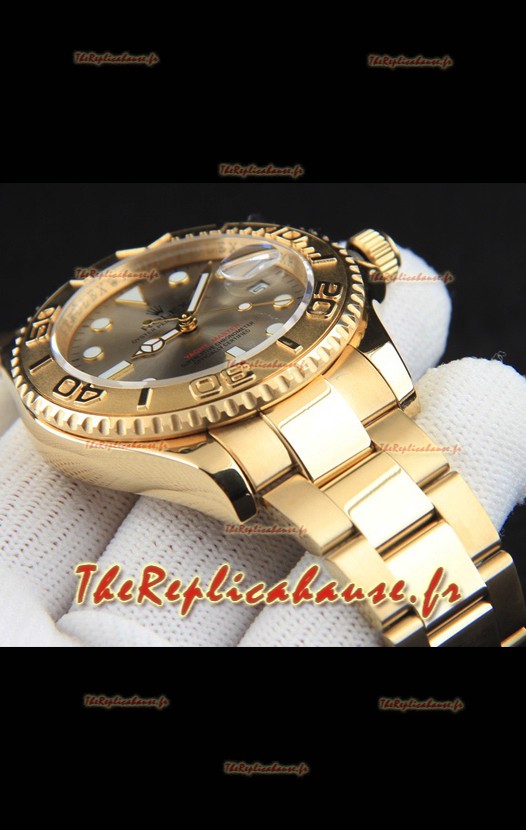 Montre Rolex Yachtmaster à mouvement japonais, boîtier en or, cadran gris, 37 mm